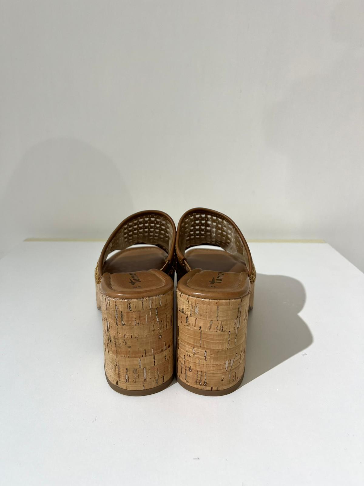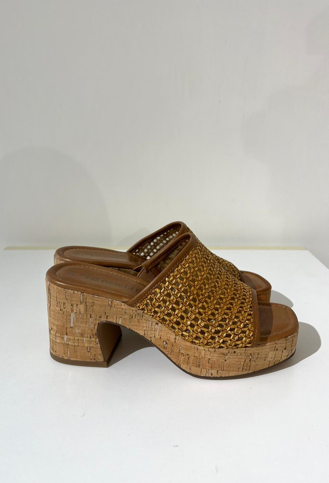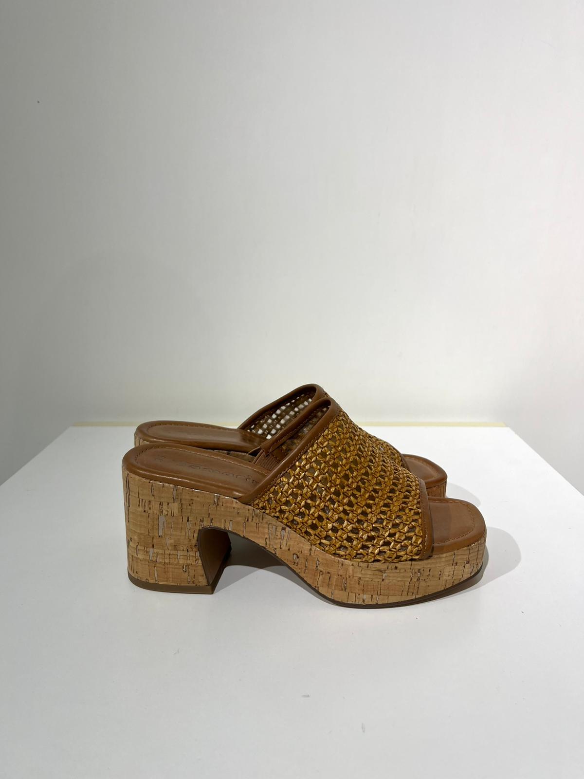 Dai quel qualcosa in più al tuo look estivo con questi eleganti sabot realizzati in un sofisticato mix di materiali di tessuto e similpelle. Il tacco largo di 8,0 cm si combina con una suola in sughero testurizzato che promette stabilità e comfort. Il design intrecciato emana uno chic moderno ed è perfetto per le feste estive o le uscite notturne.
